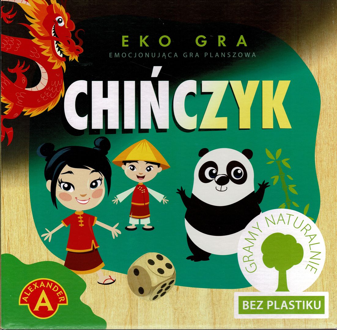 Chinczyk : emocjonująca gra planszowa. - Chwaszczyno : Z.P. "Alexander" Piotr Pundzis, [2020]. - 1 pudełko (4 drewniane żółte pionki, 4 drewniane czerwone pionki, 4 drewnianie niebieskie pionki, 4 drewniane zielone pionki, 1 drewniana kostka, 1 plansza, instrukcja) ; 27x27x5 cm.